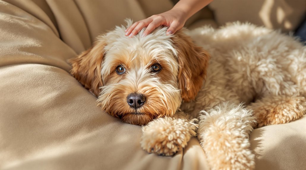 Maintaining your Cairnoodle's curly coat requires weekly brushing sessions to prevent frustrating matting problems. You'll find that regular grooming not only keeps your dog looking their best but also helps reduce allergens in your home.