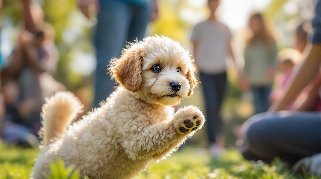 You'll need to maintain a structured training approach, as these dogs thrive on routine and clear expectations. While they're naturally smart, your Maltipoo's success in training depends largely on your consistency and positive reinforcement methods. Regular training not only improves their behavior but also provides the mental exercise they need to stay happy and well-adjusted.