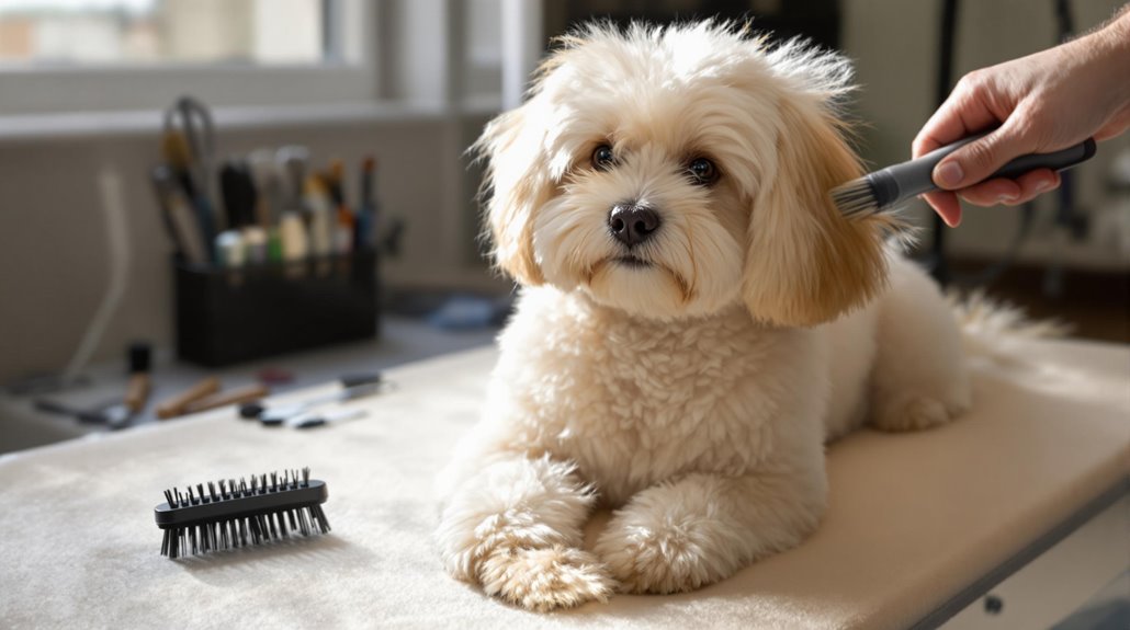 You'll find that establishing a daily brushing routine saves you time and effort in the long run. By dedicating just 15-20 minutes each day to brush your Maltipoo's coat, you're preventing more serious grooming issues from developing. This regular maintenance also creates an opportunity to bond with your pet while ensuring their coat remains in ideal condition.
