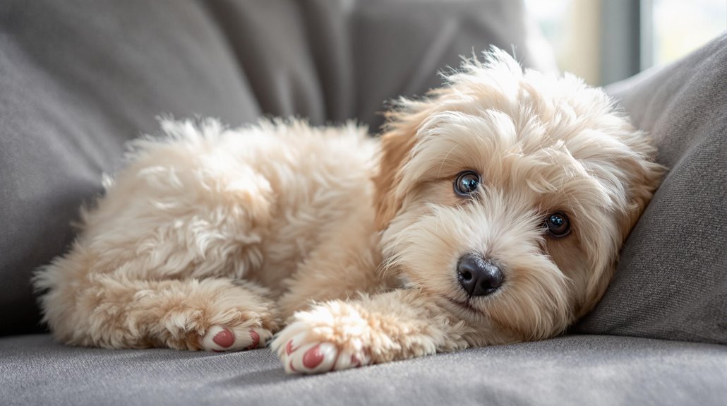 Managing separation anxiety in Maltipoos demands a strategic approach from day one. These affectionate companions form strong bonds with their owners, making them particularly susceptible to distress when left alone. You'll need to implement several proven techniques to help your furry friend adjust to solo time.